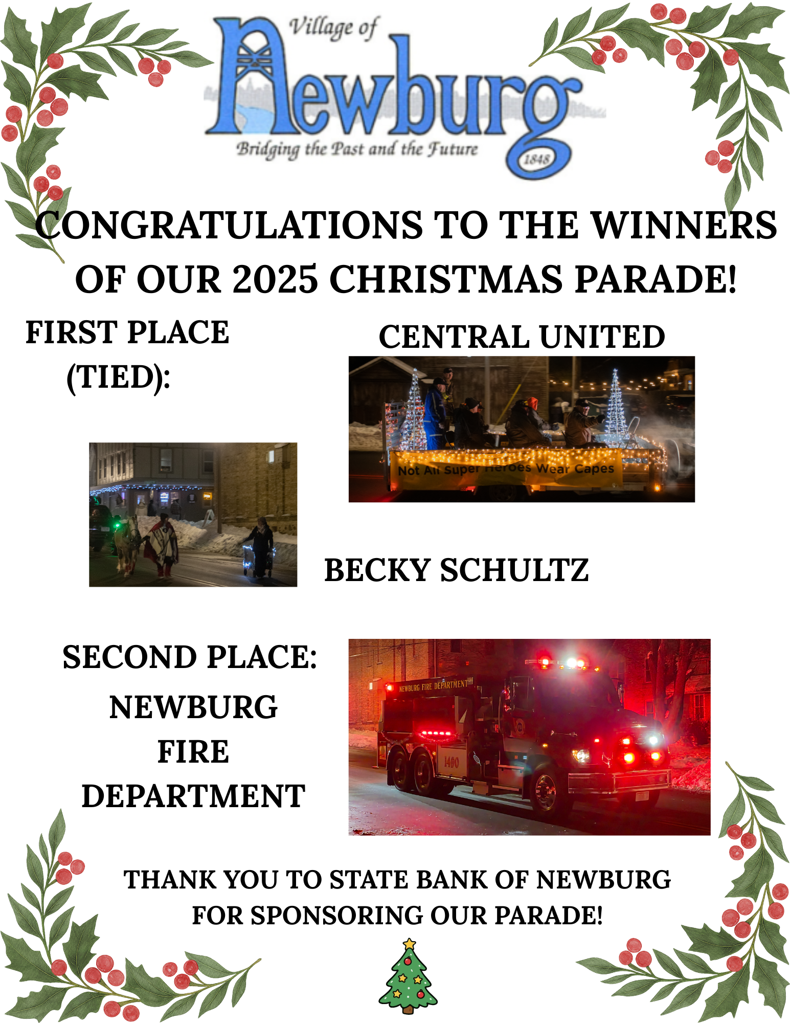 CONGRATULATIONS TO THE 2025 CHRISTMAS PARADE WINNERS! THANK YOU TO ALL WHO PARTICIPATED!